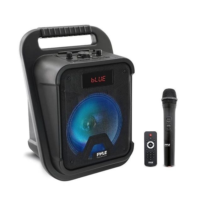 Pyle Portable Pa Speaker System with Led Lights, Wireless Microphone, Bluetooth, Fm Radio & Rechargeable Battery