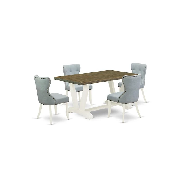 East West Furniture 5-Piece Dining Table Set- 4 Upholstered Dining Chairs with Baby Blue Linen Fabric Seat and Button Tufted Chair Back