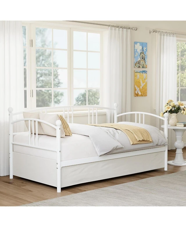 gaomon Twin Daybed with Trundle Metal Sofa Bed Frame Steel Slat Support Space Saving Furniture for Living Room or Bedroom
