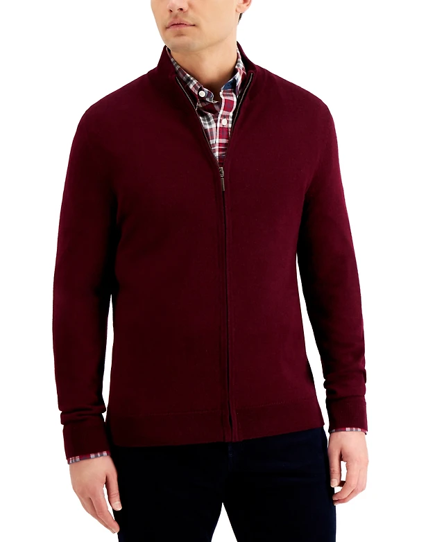 Club Room Men's Merino Zip-Front Sweater, Created for Macy's