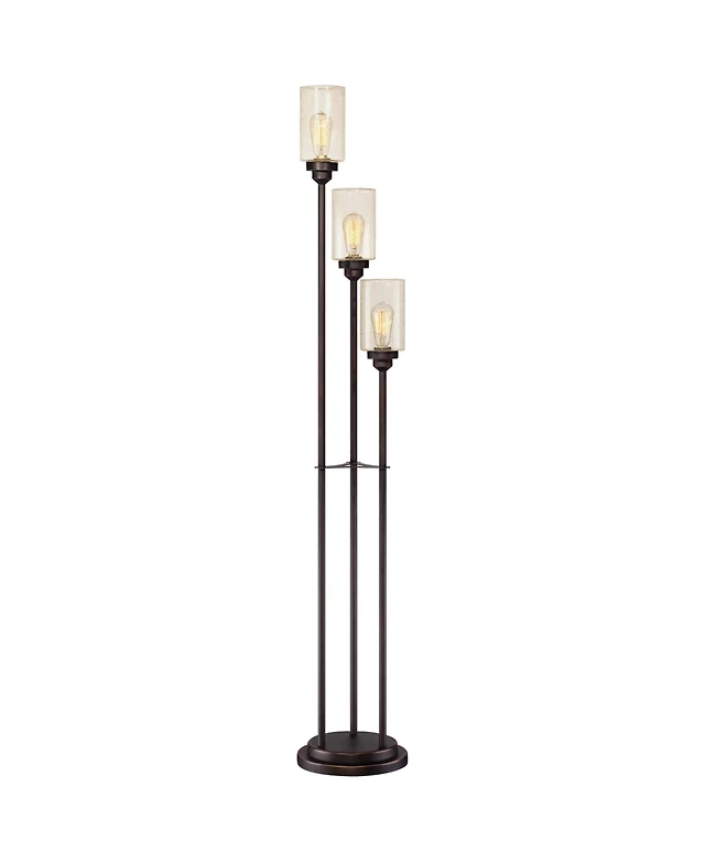 Franklin Iron Works Libby Industrial Modern 66" Tall 3-Light Amber Glass for Living Room
