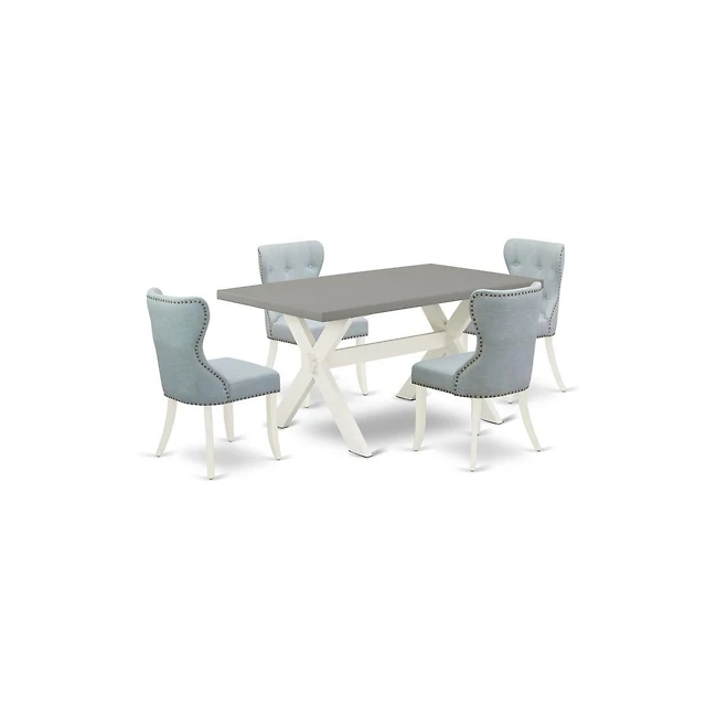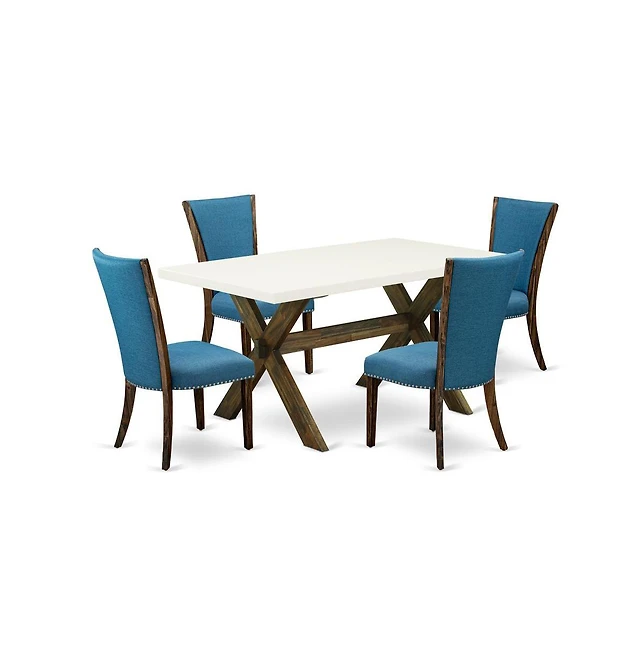 East West Furniture dining table set of 4 fantastic dining room chairs with Linen Fabric Baby Blue color and a lovely Square dining room table with Li