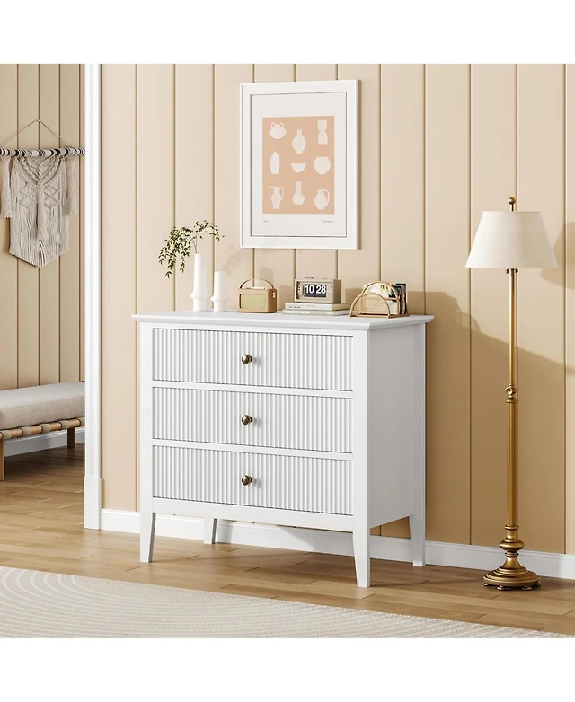 gaomon Fluted Dresser for Bedroom with 4 Drawers, 38.6 Tall Modern Gold Metal Handles, Wide Chest of Drawers Living Room, Hallway