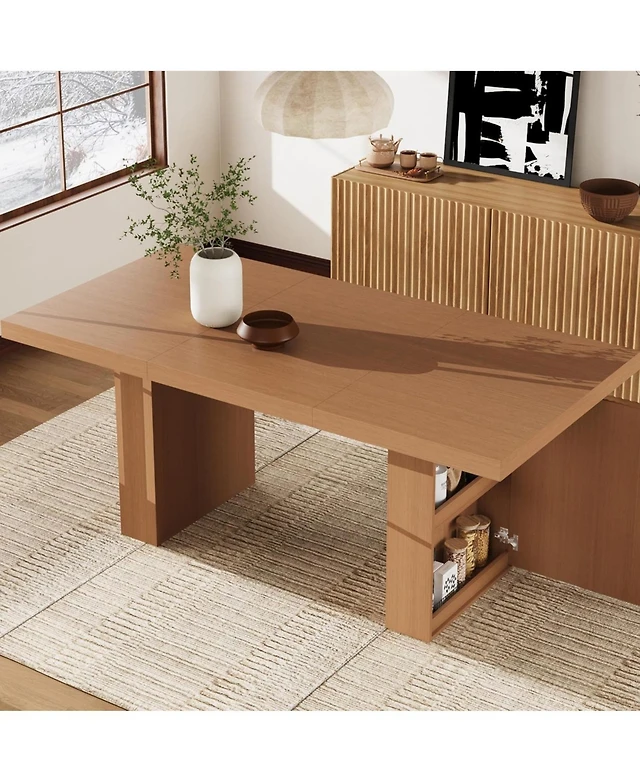 gaomon Dining Table with Storage, 70.8" Wood Kitchen Table with Thickened Tabletop and Fluted Legs, Dinner Tables for Kitchen Dining Room