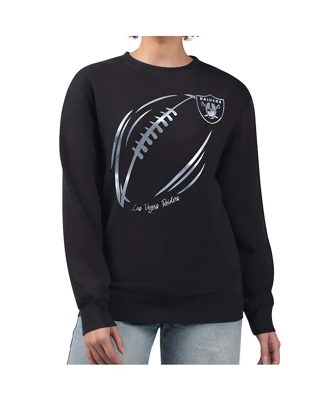 G-iii 4Her by Carl Banks Women's Black/Silver Las Vegas Raiders Metallic Print Football Sketch Fleece Crewneck Sweatshirt