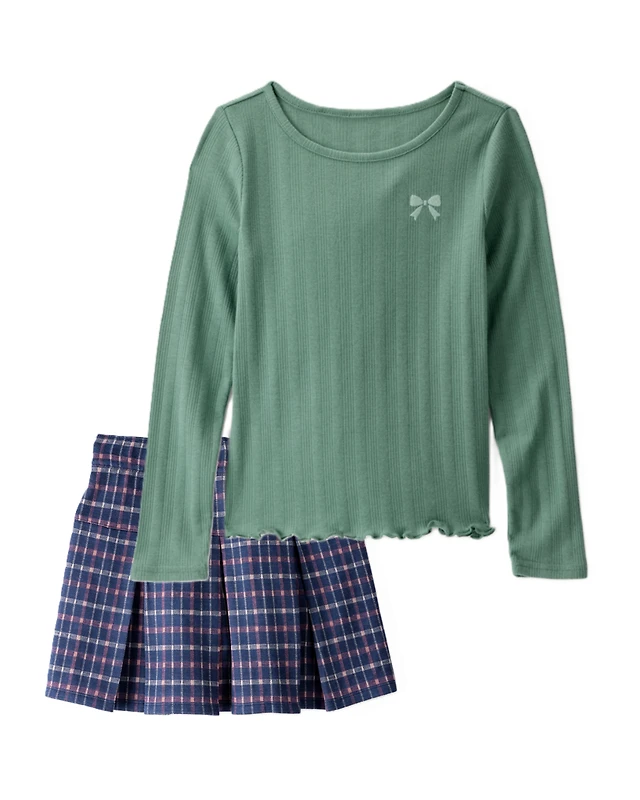 Toddler Girl Bow Long-Sleeve Top & Tulle Skort Set - Pink