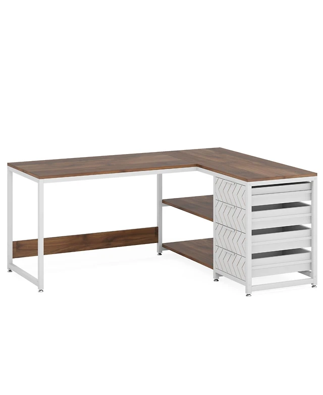 Tribesigns L-Shaped Computer Desk with Drawers and Shelves, Reversible White Corner Office Desk with Storage Cabinet, Study Writing Table for Home Off