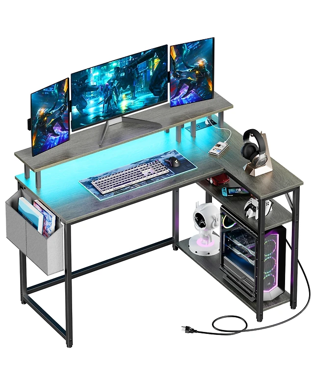 47.2'' L-Shaped Desk with Power Outlet and Shelf, Reversible