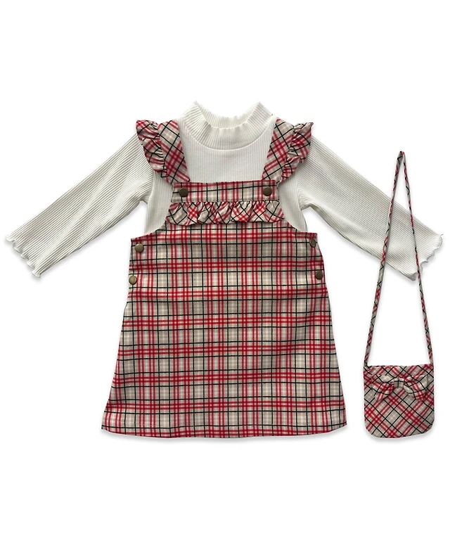 Blueberi Boulevard Girls 2T-6X 3-Piece Plaid Jumper, Top and Crossbody Set