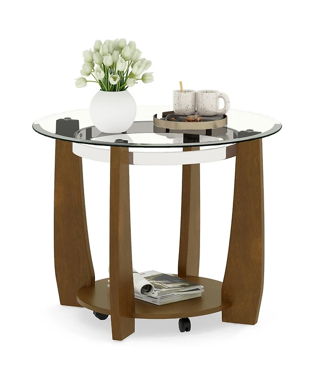 Streamdale Furniture 24" 2PC Curved Round Wooden Coffee Table Set