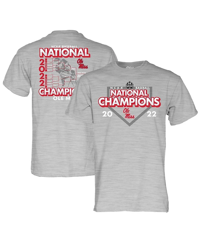 Men's Blue 84 Heathered Gray Ole Miss Rebels 2022 Ncaa Men's Baseball College World Series Champions Schedule T-shirt