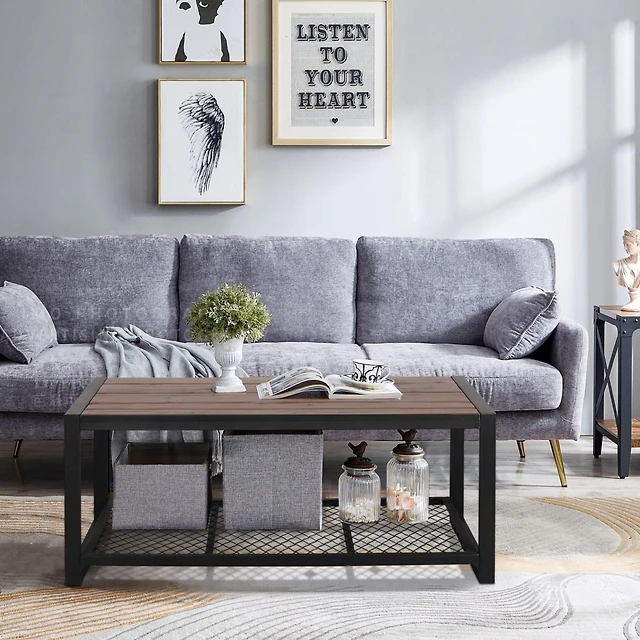 Streamdale Acacia Wood Patio Coffee Table with Iron Frame