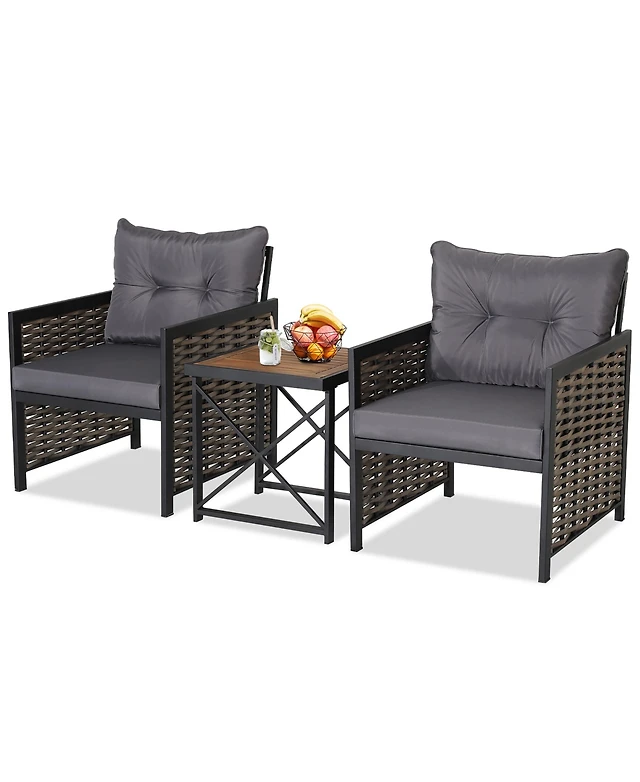 Gymax 5 Piece Patio Rattan Woven Conversation Set Stable Acacia Wood Frame for Backyard w/ Coffee Table