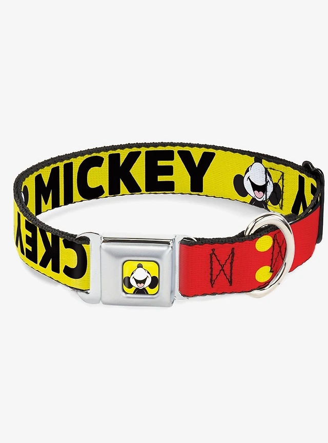 Disney Mickey Smiling Up Pose Flip Buttons Yellow Black Red Seatbelt Buckle Dog Collar