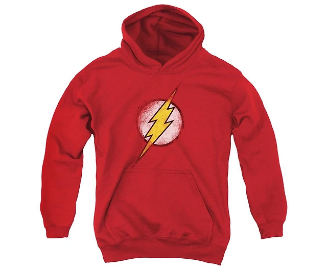 Justice League Boys of America Youth Destroyed Flash Logo Pull Over Hoodie / Hooded Sweatshirt