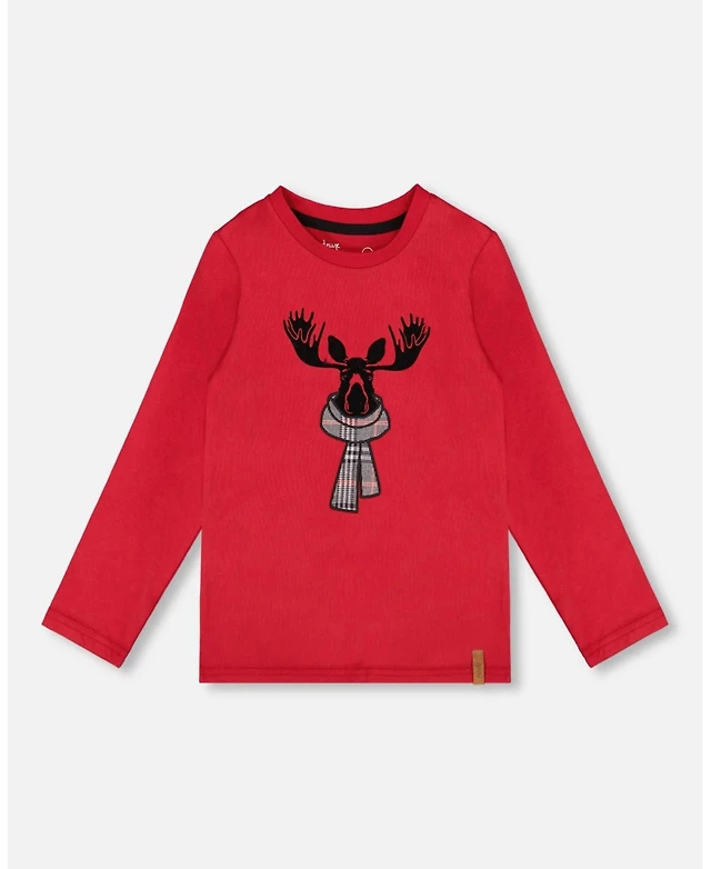Deux par Baby Boys Jersey T-Shirt Cherry Red with Moose