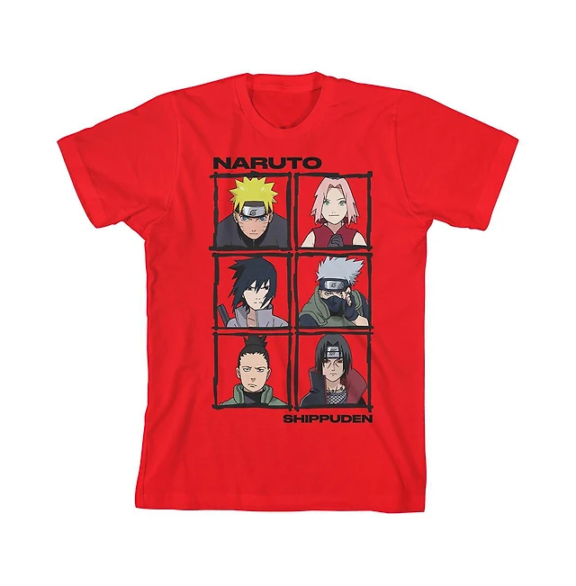 Naruto Shippuden Anime Characters Youth Boys Red Graphic Tee-xl