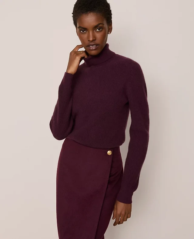 Mock-Neck Lettuce-Edge Rib Top