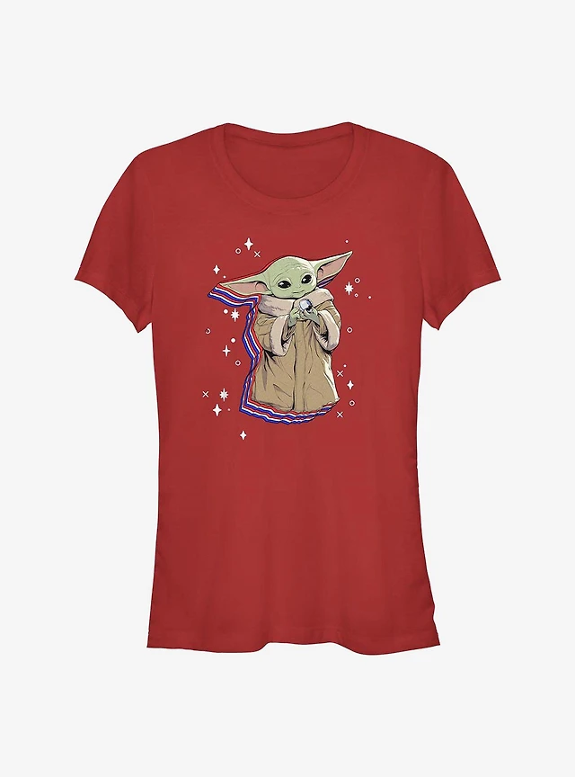 Star Wars The Mandalorian Child Red White And Blue Shadows Girls T-Shirt
