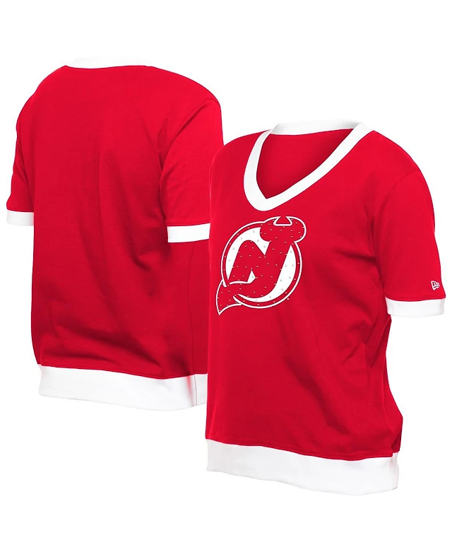 Men's Nico Hischier Red New Jersey Devils Team Authentic Stack Name and Number T-shirt