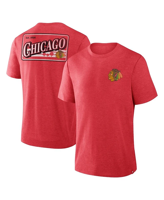 Fanatics Mto Label Men's Red Chicago Blackhawks Distressed Tri-Blend T-Shirt