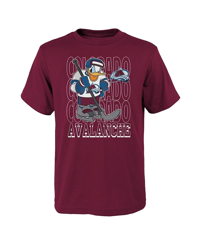 Big Boys and Girls Burgundy Colorado Avalanche Disney Donald Duck Three-Peat T-shirt