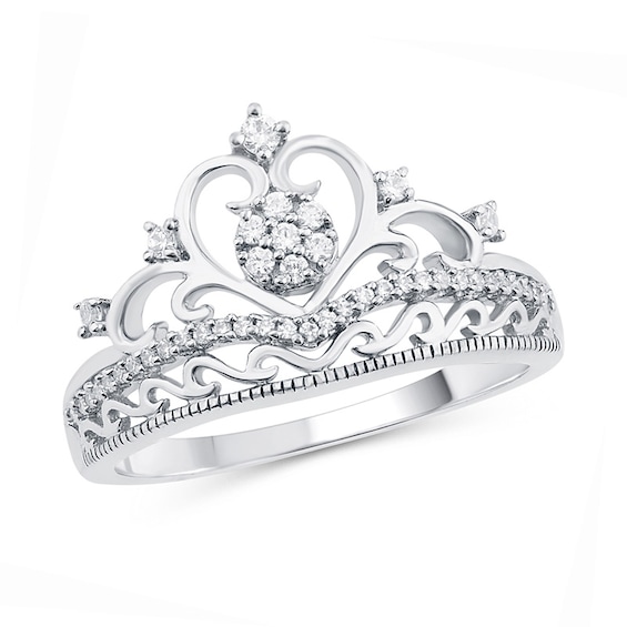 1/5 CT. T.w. Multi-Diamond Heart Crown Ring in 10K White Gold