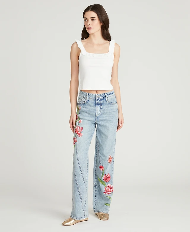 Rivete Tall Curvy Unpicked Mid Rise Wide Leg Jeans Vintage Light Wash
