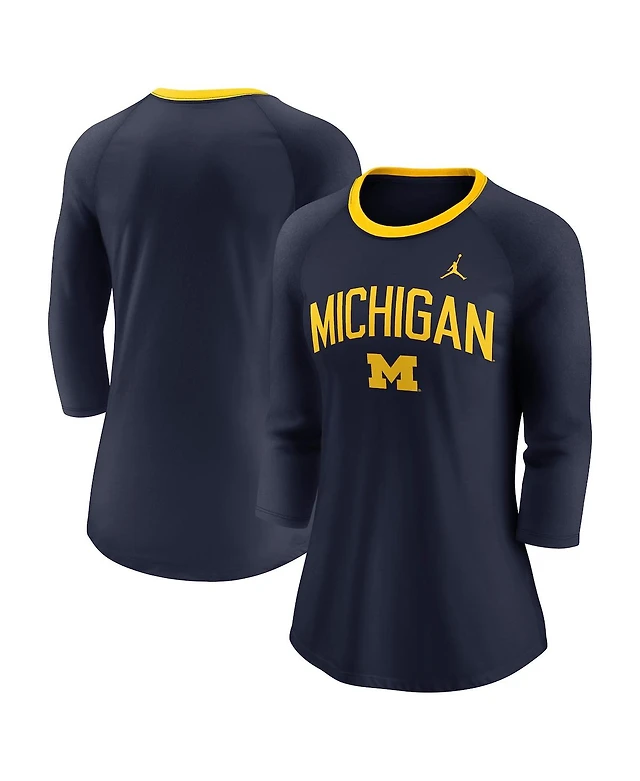 Jordan Women's Navy Michigan Wolverines Tri-Blend Raglan 3/4 Sleeve Top