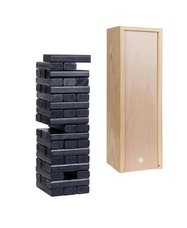 We Games Walnut Stain Wood Blocks Tower Game with Wooden Box, 12 in.