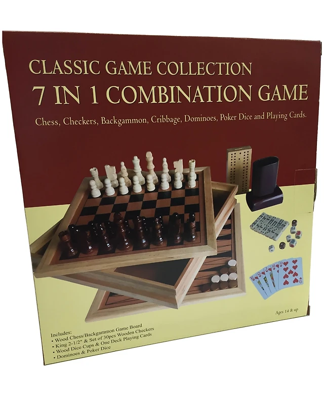 Trademark Games Deluxe Wooden 3-In-1 Chess, Backgammon Checker Set
