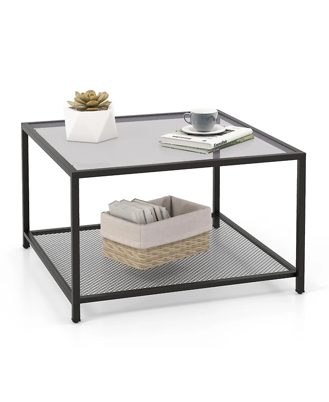 Streamdale Modern Black Glass Coffee Table Set for Living Room