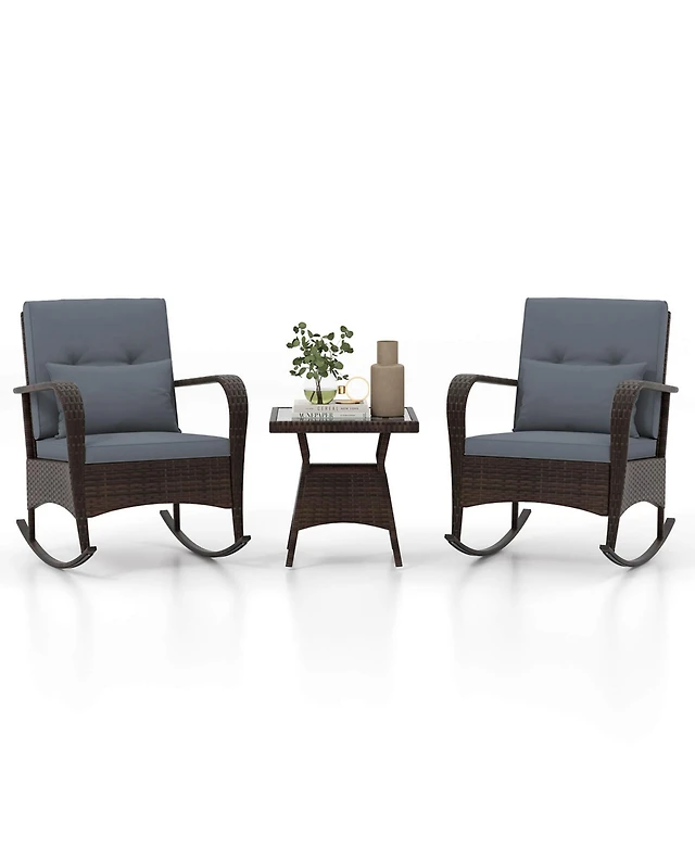Gymax 3 Pcs Eucalyptus Rocking Chair Set W/ Coffee Table 2 Wood Conversation Chairs