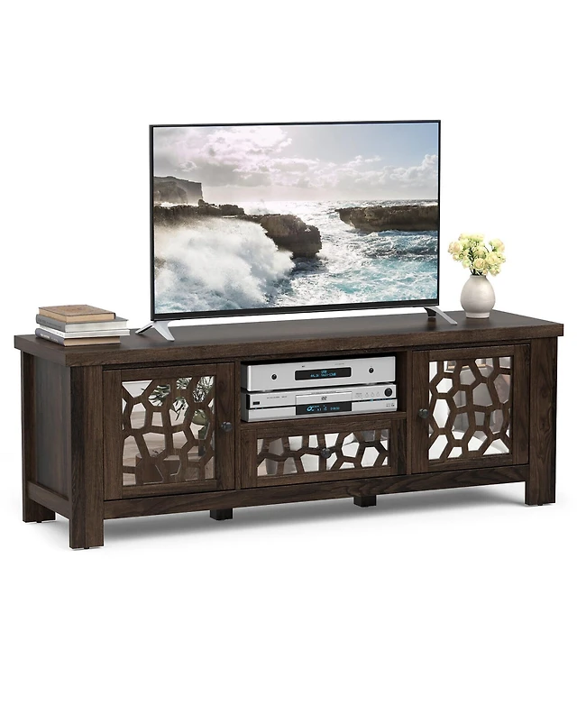 Mirrored Tv Stand for Tv up to 65 Inch with Spacious Tabletop and 2 Storage Cabinets