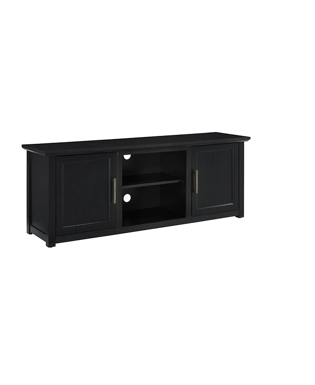 Tv stand with two doors and three drawers, multi-purpose media console, black wood entertainment center