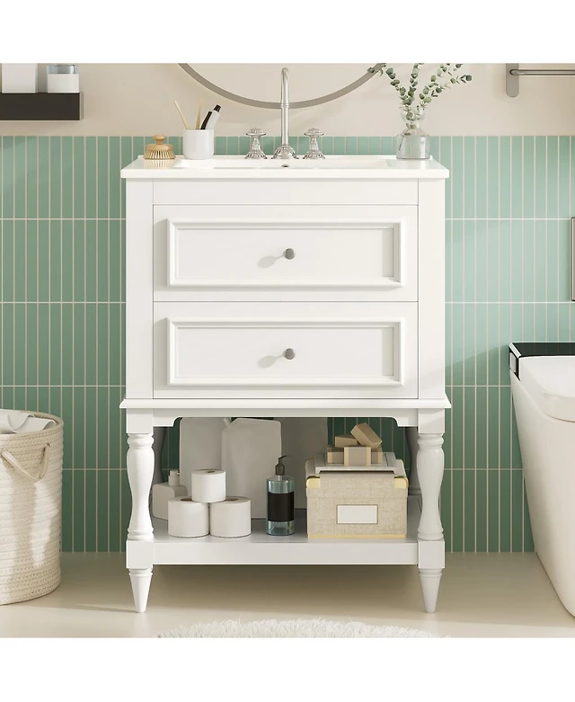 Busdays Bathroom vanity with sink Modern Bathroom Vanity with Ceramic Basin 1 Drawer, Free Standing Bathroom Storage