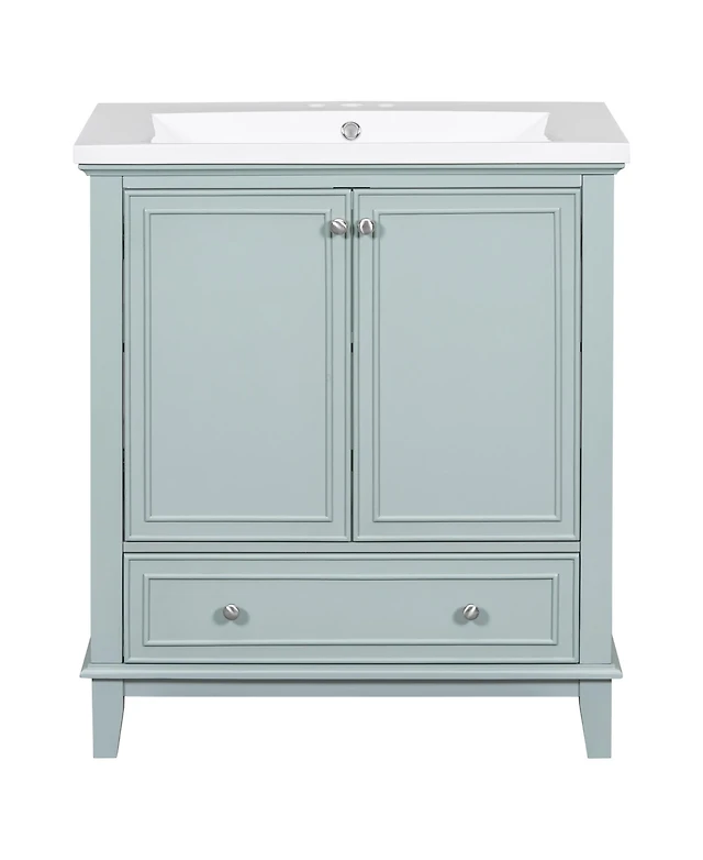 Sillysis 24" Bathroom Vanity with Sink, Solid Wood Cabinet Flip Drawer and Adjustable Shelf, Freestanding Modern Storage for Small Spaces
