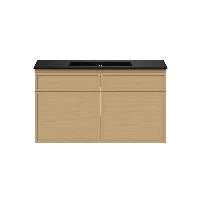 Swiss Madison 36" Wall-Mounted Bathroom Vanity, Natural Oak, Black 3-Hole Widespread Sink Top