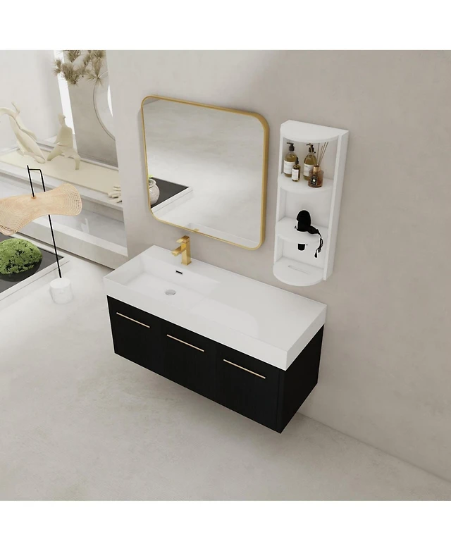 Streamdale 60" Wall-Mount Vanity, Resin Sink & Cabinet, Soft-Close Drawers