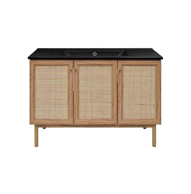 Swiss Madison48" Wall-Mounted Bathroom Vanity in Black Oak with Black Double Basin Sink Top