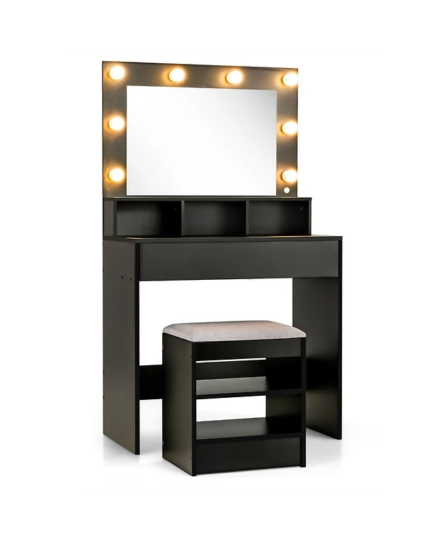 Makeup Vanity Dressing Table Set with Dimmable Bulbs Cushioned Stool