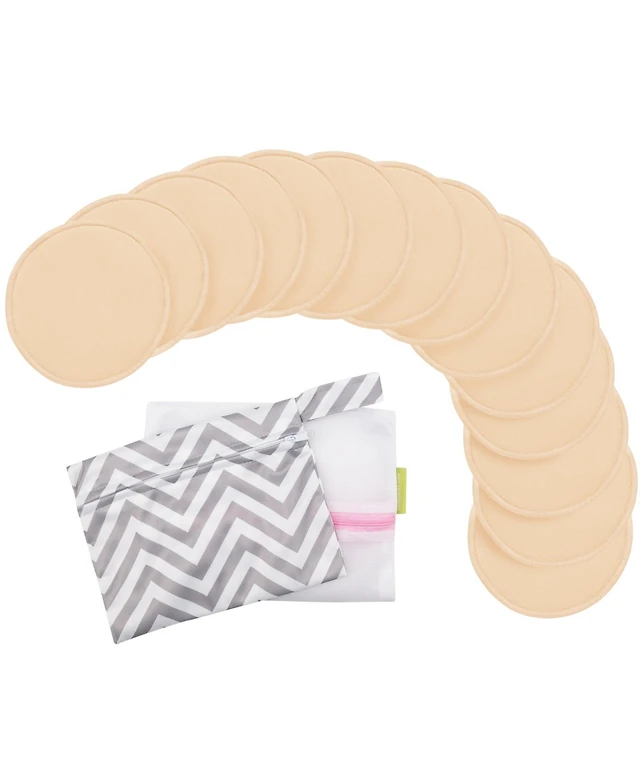 KeaBabies 14pk Organic Nursing Pads, Washable Breast Pads + Wash Bag, Reusable Nipple