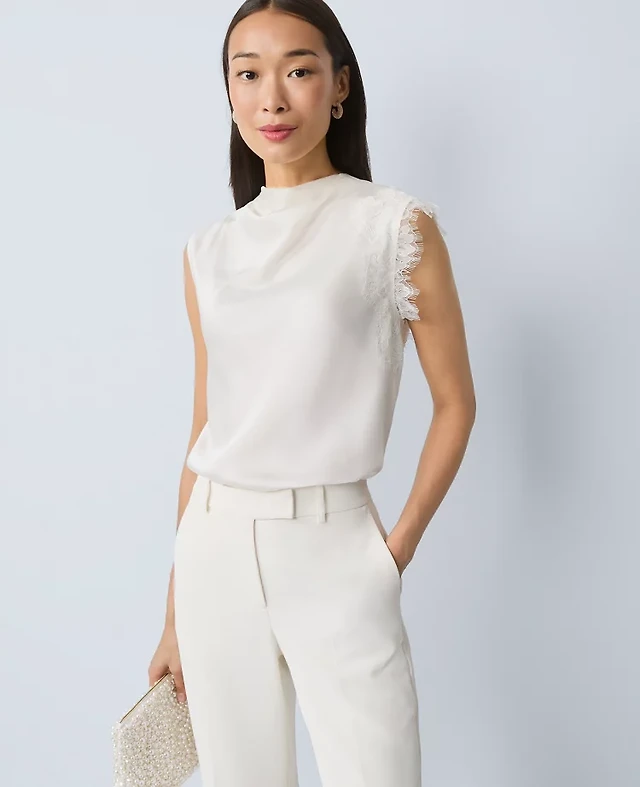 Ann Taylor Modern Tie Neck Blouse Winter White Women's