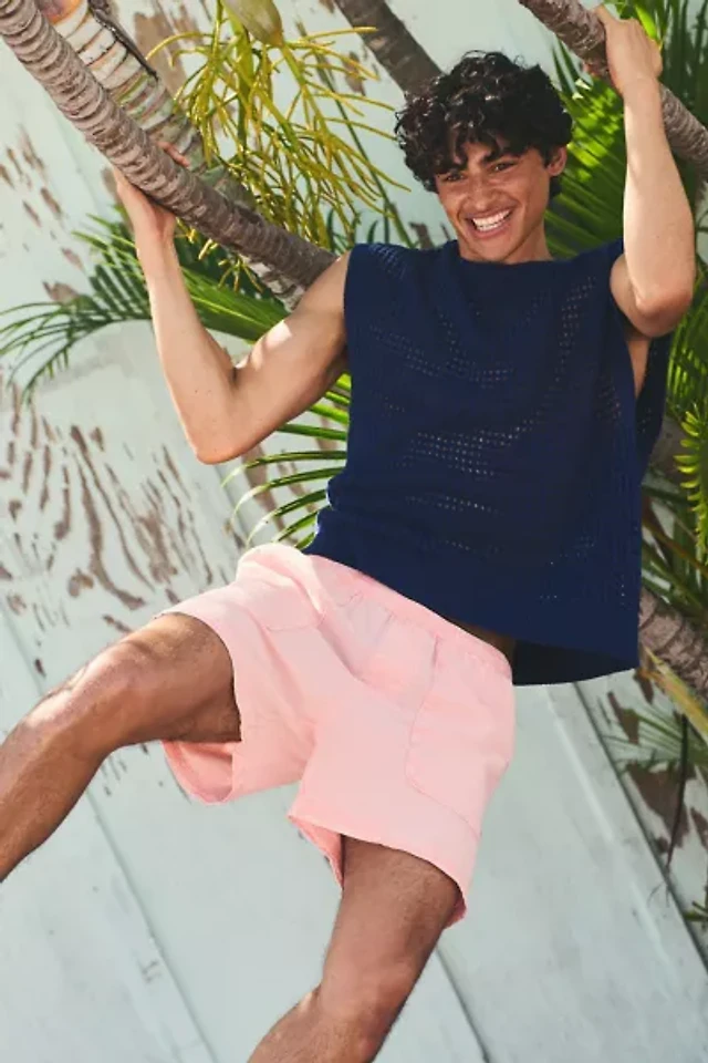 Weatherproof Vintage Mens Short Sleeve Woven Crewneck Sweater Drawstring Pants