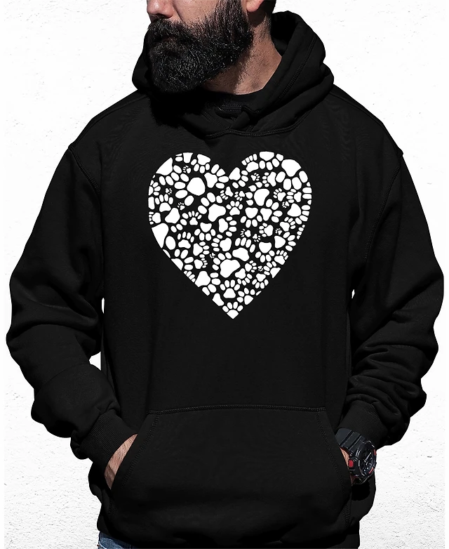 Men's Word Art Script Love Heart Hooded Sweatshirt