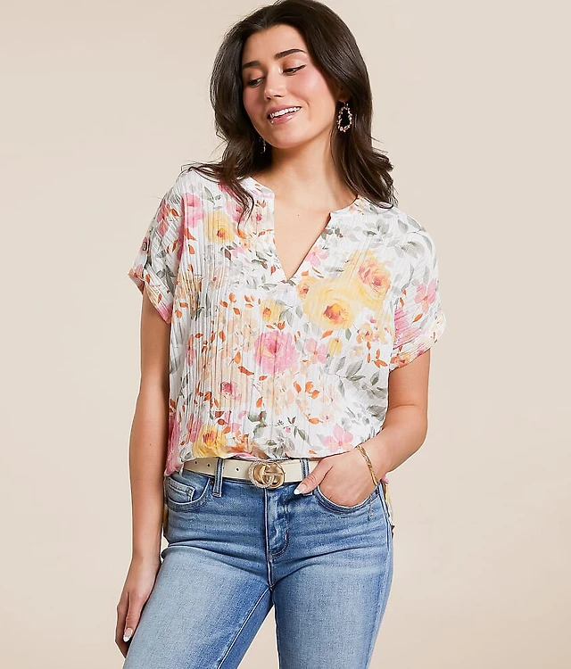 Petite Tiled Flutter Sleeve Wrap Blouse
