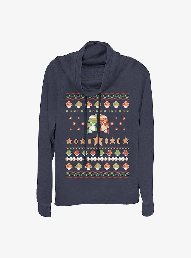 Nintendo Mario Holiday Friendship Cowlneck Long-Sleeve Girls Top