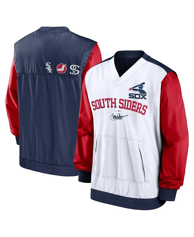 Nike Men's White/Navy Chicago White Sox Rewind Warmup V-Neck Pullover Jacket