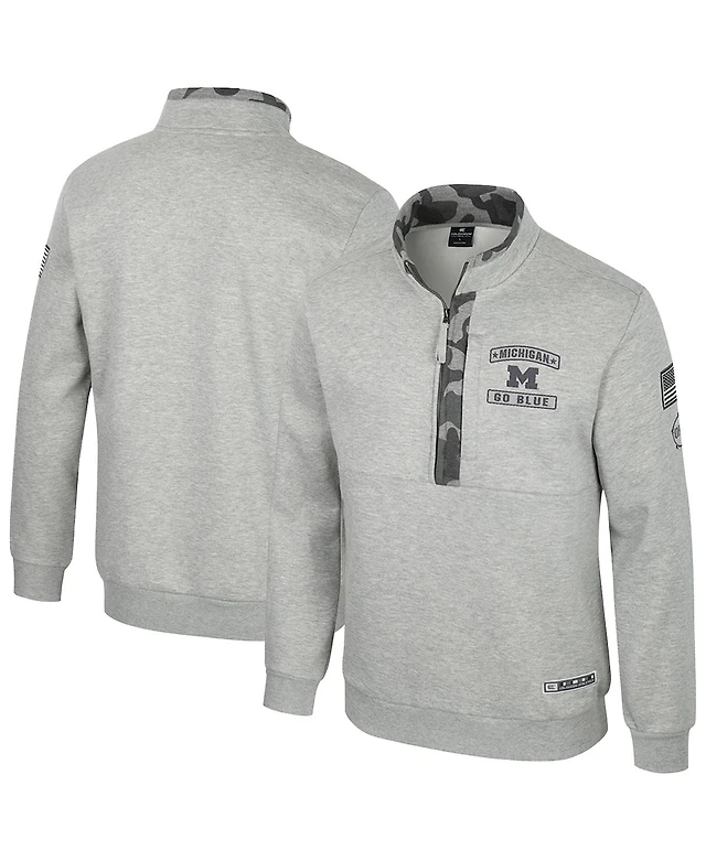 Colosseum Men's Heather Gray Michigan Wolverines Oorah Oht Military Appreciation Fleece Quarter-Zip Jacket