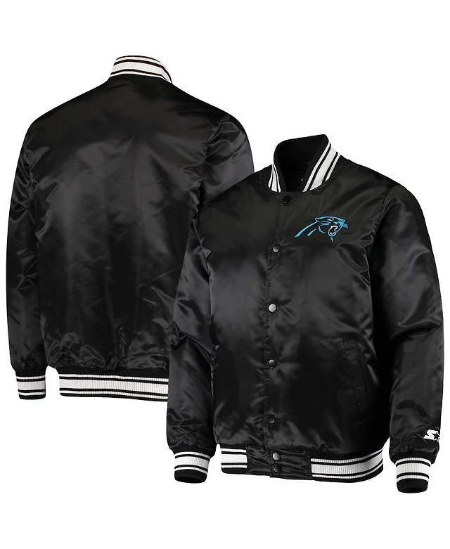 Men's Starter Black Carolina Panthers Locker Room Satin Varsity Full-Snap Jacket